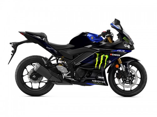 The limited edition YZF-R3 sports an edgy, aggressive look that reflects the Monster Energy Yamaha MotoGP YZR-M1’s styling, made famous by MotoGP superstars Valentino Rossi and Maverick Viñales.